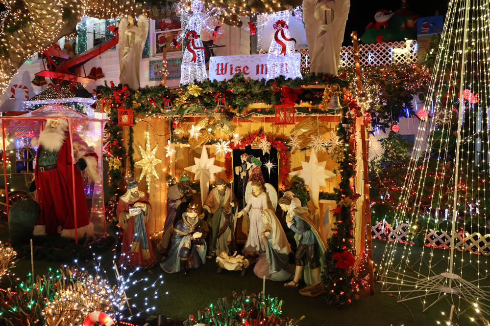 … many a Christmas story is told in the Menashe Family‘s front yard at 5605 Beach Drive SW, which at this time of year offers up West Seattle’s brightest Christmas lights, from the tree tops to the sidewalk: