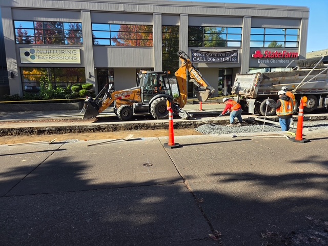 Thanks for the tip! After a reader told us about the road work on 44th SW between Alaska and Edmunds, we went over to check it out. A crew’s doing concrete pavement work and the street is partly closed right now.