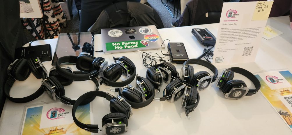 1:15 PM: Ever gone to Alki for Silent Dance? They’re here too – with the headsets that make it “silent”: