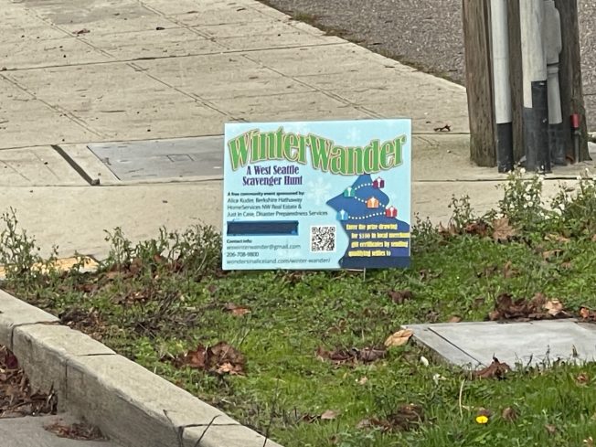 The Winter Wander Scavenger Hunt is a free, 10-day community event designed to bring friends and families together for holiday fun. Wanderers download instructions, a Bingo-style clue sheet, and a map, then scour West Seattle to identify the locations that solve the clues, and upload selfies in front of those locations to qualify for prize drawings. Open to everyone of all ages! Winter Wander starts at 5 PM Fri., Dec. 5h, and concludes at 7 PM, Sun., Dec. 14th, 2025. Sign up anytime between those dates by registering at wondersinaliceland.com.