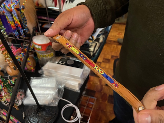 Jonny is selling items primarily from Ecuador and Peru, including beaded leather bands: