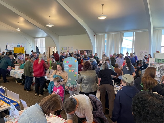 11:45 AM: That’s just part of the crowd in the upstairs hall at St. John the Baptist Episcopal Church (3050 California SW), where the first-ever West Seattle Joiner Jamboree is the place to be today. We’re here, based at a table on one end of the room (across from the coffee and snacks), and the hall is full of your neighbors, both representatives of more than 50 clubs, organizations, coalitions, etc, (see the list in our calendar listing – many are regularly featured in our calendar and daily event highlights), and people who’ve come to find out more about what’s happening in the community. This is continuing until 3 pm; updates to come! Be sure to get a raffle entry card while you’re here – get five participants to initial it and you’re eligible to enter; they’re doing drawings just before the top of each hour, and you need to be here to win.