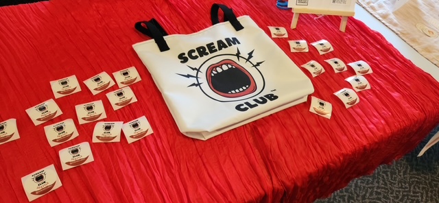 12:50 PM: We’ve had a couple photographers roaming for highlights for us. WSB’s Torin Record-Sand found Amber from Scream Club Seattle (which inspired much discussion when they launched at Lincoln Park, where they’re having monthly gatherings):