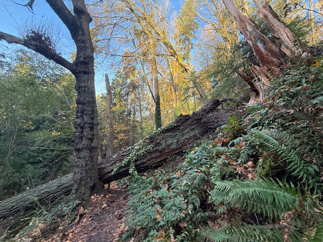 A warning to Schmitz Park -goers: A large tree fell, and is blocking the main trail off the Hinds street entrance. Recommend using another entrance.