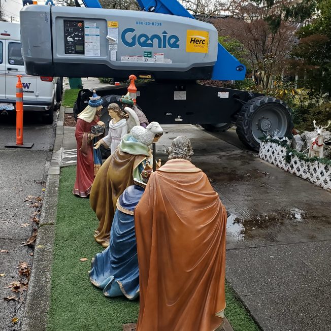 Tomorrow is not only Thanksgiving, but also exactly four weeks until Christmas, which means time for nightly photos of West Seattle’s holiday lights here on WSB. We love showing photos of West Seattle’s best and brightest, whether you’re aiming for Menashe Family-level density (above is a photo sent by Cindi while they were starting setup earlier this week) or something a little subtler. With a rainless afternoon, we suspect more lights might have gone up today, so we’ll go scouting later this week, but we also welcome your photos – westseattleblog@gmail.com. You don’t have to include the exact address – just the block is fine (xx00 block of xx SW, for example) – as long as that’s enough info for light-sightseers to find it. (Scroll through this archive to see what we’ve featured in past years!)