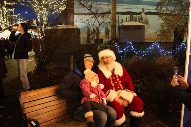 Indoors, it was story time with Santa, and the fill-the-sleigh food drive for St. Vincent de Paul: