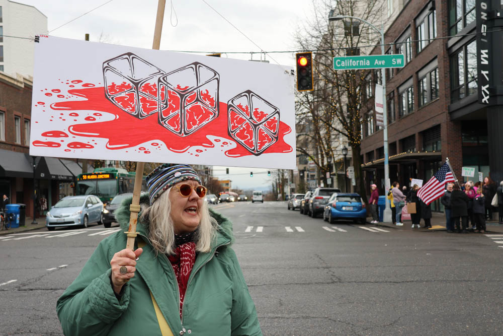 This was a “satellite” protest, as one texter put it, as West Seattle Indivisible was a co-sponsor of what was expected to be the largest demonstration in the city today, at midday at Cal Anderson Park. Meantime, we received some photos of the West Seattle demonstration from local texters, including these: