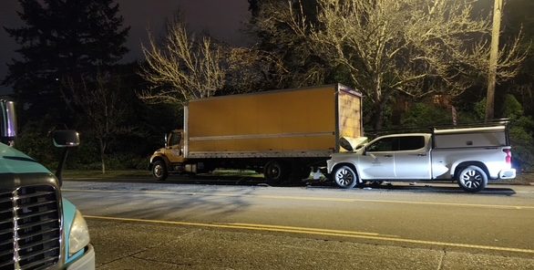 9:38 PM: Photo added; it shows this was a pickup-truck driver hitting a parked box truck. No indication of serious injury – SFD left after only about 15 minutes.