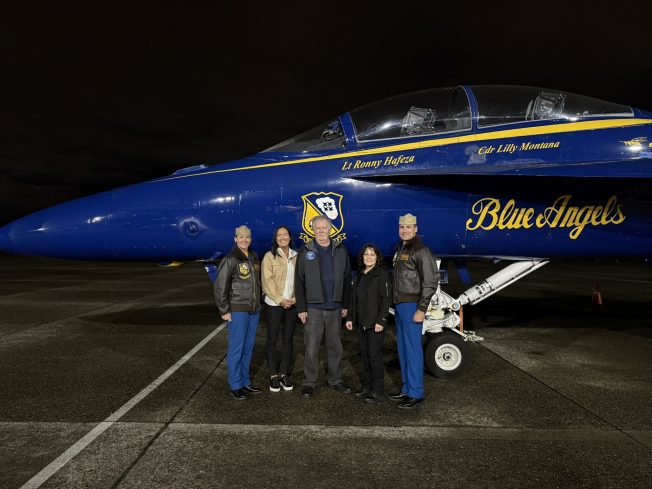 Lt. Ronny Hafeza (Blue Angel #7, usually the narrator) and Cdr. Lilly Montana (Blue Angel #8, usually the event coordinator) are expected to fly back out later this morning.