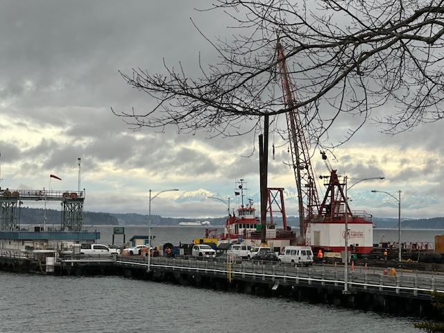Thanks to the texter who sent that photo, wondering what’s up with the crane alongside the Fauntleroy ferry dock. We took the question to Washington State Ferries, and a spokesperson replied: