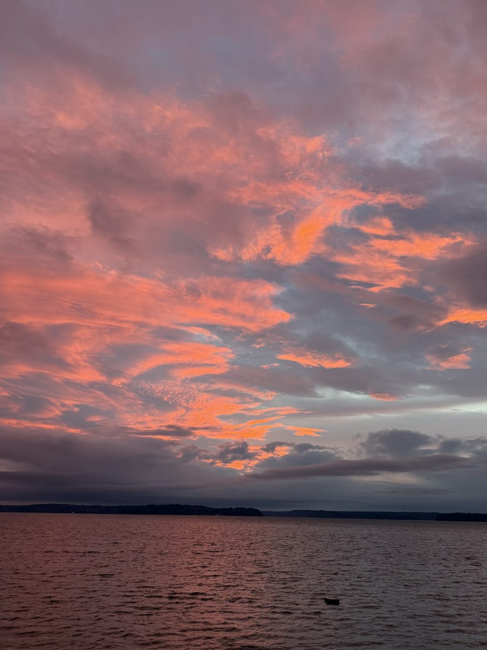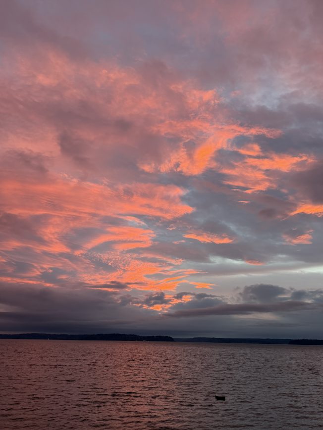 You didn’t have to be by the water to see tonight’s pastel-pink sunset. Bob Burns took the top photo from near Admiral Safeway. But we did get water views too, this one from Carol Ann:
