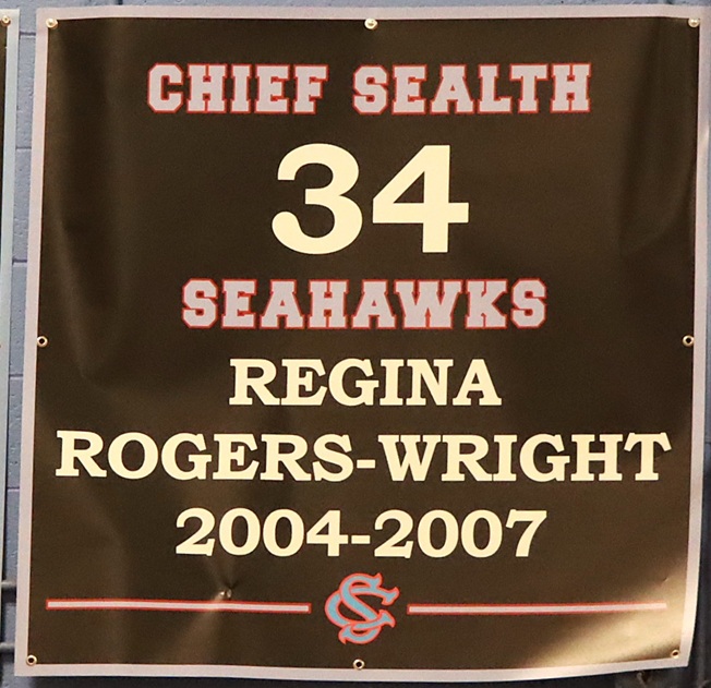 As we reported back in 2020, Sealth honored Rogers-Wright and retired her #34 jersey. A banner still hangs proudly in the Sealth gym: