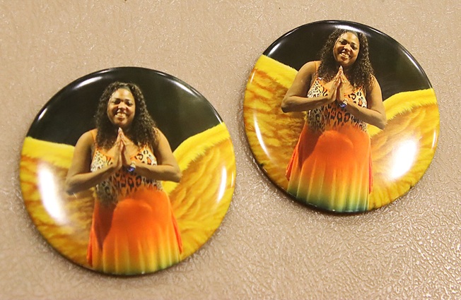The family wore commemorative pins in her honor: