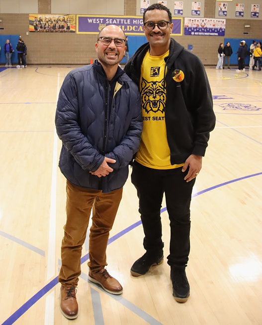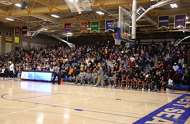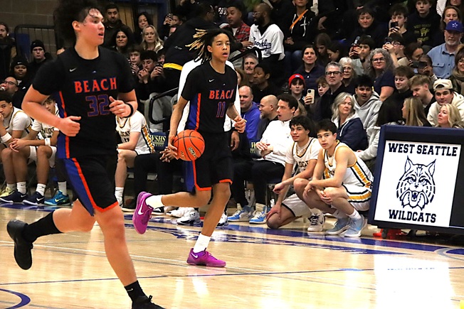 That enthusiastic greeting from a fellow standing-room-only sideline spectator summed up the high-energy environment in the West Seattle High School gym on Friday night, as the boys’ basketball squad hosted defending 3A state champion Rainier Beach.