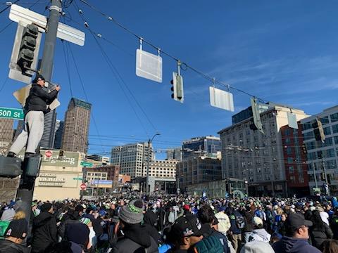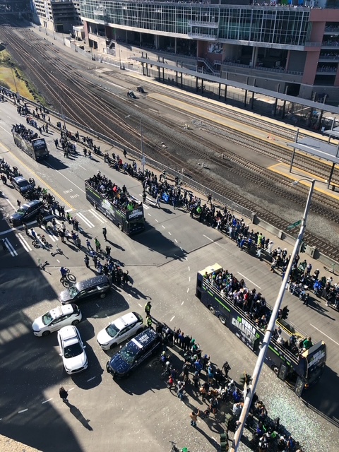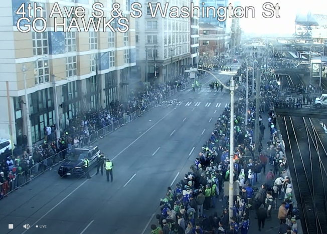 11:29 AM: It’s on – the Seahawks‘ Super Bowl victory parade (starting half an hour later than planned)! If you’re not there, you can watch here. Pics and updates to come.