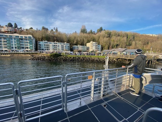 10:07 AM: Now the larger M/V Doc Maynard – which has been on the Vashon run this morning – is at Seacrest, to pick up more people who will get downtown just barely in time. We’ll be leaving the dock soon; we’ll start a separate report once the parade begins, and welcome your pic at 206-293-6302 or westseattleblog@gmail.com – thank you!