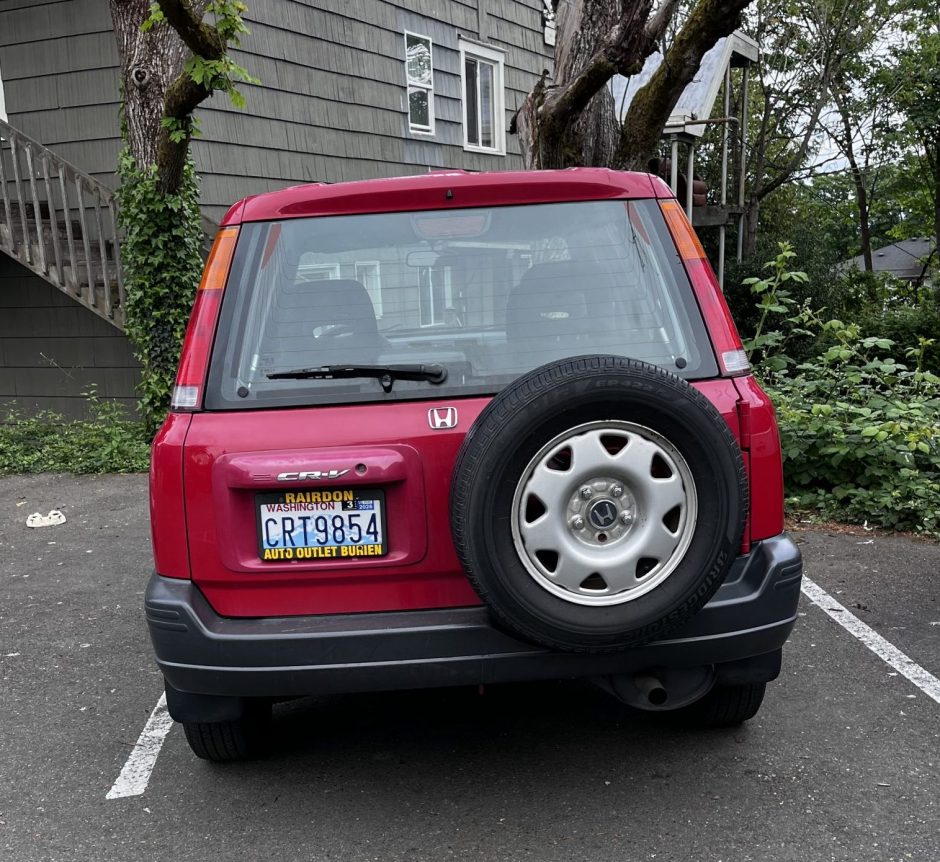 ANOTHER VAN DUMPED IN GREENBELT: Kalem reported seeing this on Sunday, and then Craig sent photos today: “Just came across this van from Food Lifeline parked on the trail to the north of the Peewee fields.”