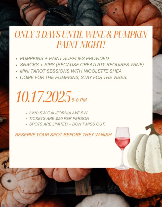 Join us October 25 1:00pm – 3:00pm at Inner Alchemy, Sanctuary and Studio located at 3618 SW Alaska Street. The entrance is on 37th Ave SW, on the lower level of the building, with an Inner Alchemy sign to the right of the door.