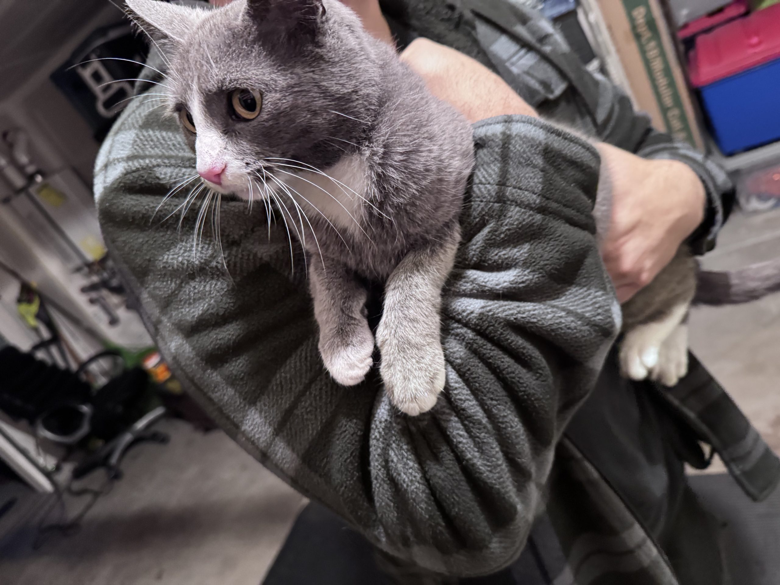 Our year old boy kitty Ozzy has gotten out and is feared lost for the moment – he has an air tag in his collar – please keep your eyes out if you could – he is very sweet but may be understandably skittish – thank you!!
