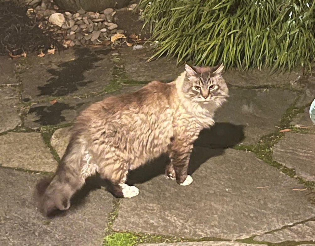 About a week ago, this cute cat came to our house and we can’t tell if it’s a stray or someone’s lost cat. It doesn’t have a collar. We’ve been feeding this past month but hoping we can either find its owner to return it to its home or find a good home for it. My name is Rebecca and I can be contacted at 206-295-8556.