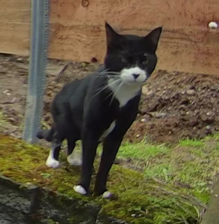 This beautiful tuxedo cat sat on a roof for several days 9000 block of 13th Ave SW.
